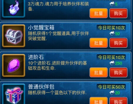 道具商店买小觉醒宝箱,随机抽取有的时候抽取不是很均匀,价格相当于50钻一个。